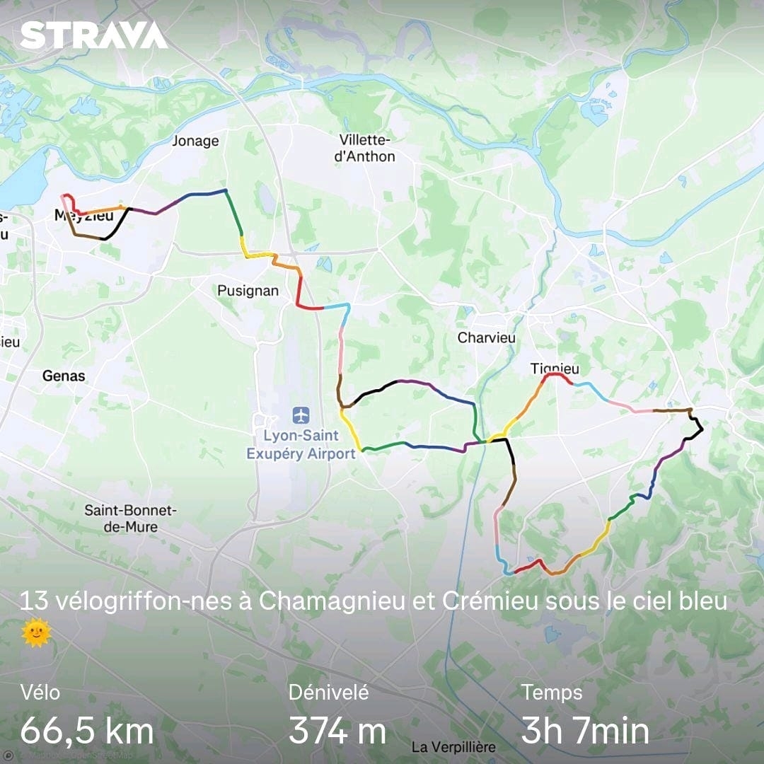 13 Griffonnes et Griffons ont parcouru 65 km à la vitesse moyenne de 22 km/h sur un parcours vallonné. Bravo.👏👏