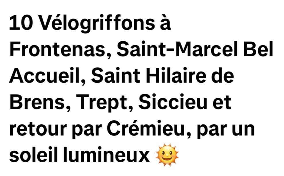 10 Griffons, un peu plus de 80 km, en fait 92 km, une erreur de parcours, de belles petites routes avec encore une chaleur modérée. Bravo les sportifs 👏👏